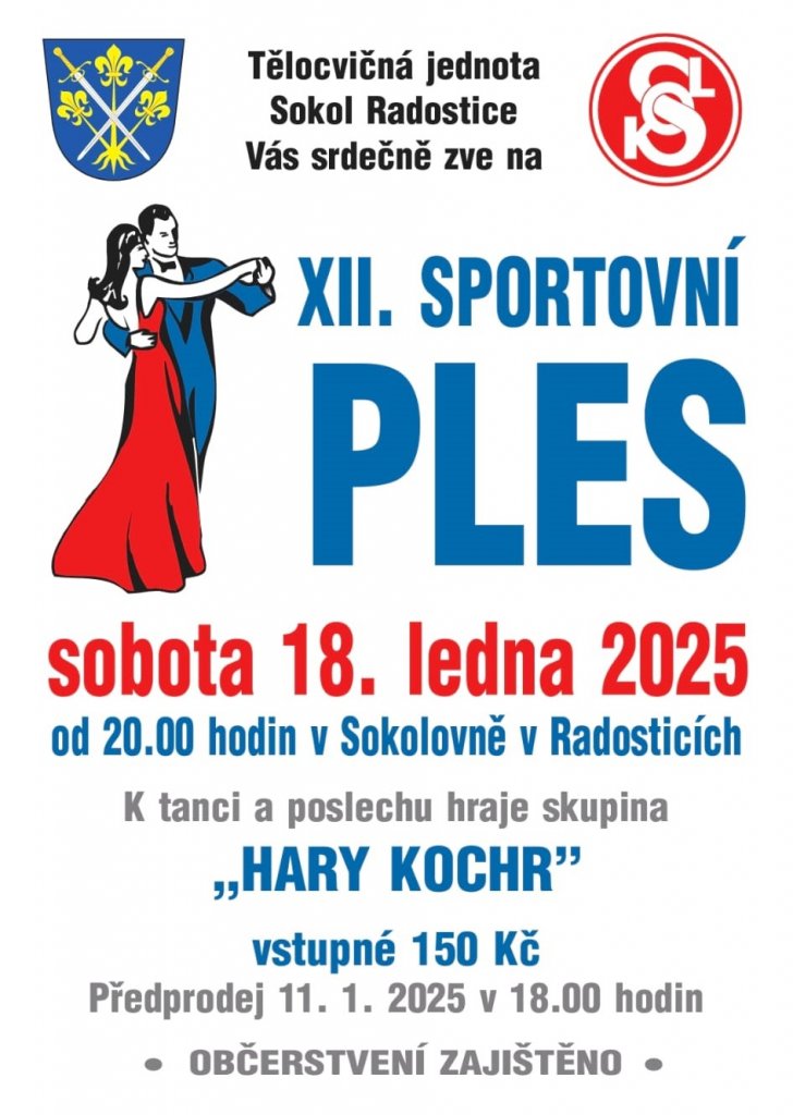 Sportovní ples v sobotu 18. 1. 2025 od 20 hod. v sokolovně